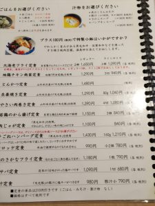 あ、ちなみにご飯はふつーの白米と八穀米とじゃこ飯、味噌汁もチョイスできるようです。(追加料金かかるものもあり)